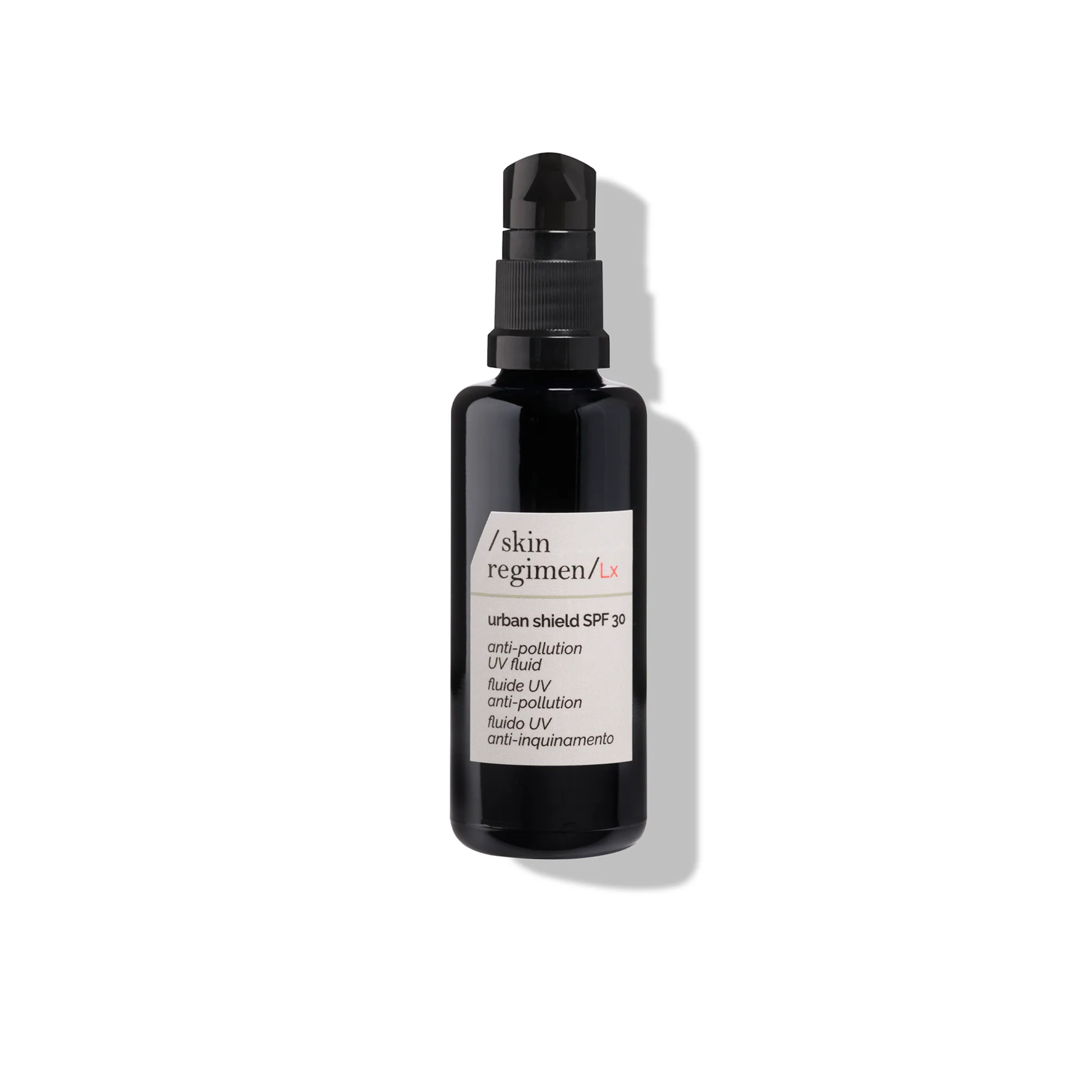 Proteggi la tua pelle ogni giorno con il fluido solare anti inquinamento /skin regimen/ Lx Urban Shield SPF 30. E’ l’alleato perfetto per difendere la tua pelle dai raggi UVA/UVB e schermare la pelle dalle impurità ambientali, quali polveri urbane accumulate, per un aspetto più giovane. Con Carnosina ed estratti di Tephrosia Purpurea, Bacca di Maqui e Spinacio favorisce un aspetto più sano della pelle. La texture leggera e non untuosa rende possibile l’applicazione dopo la crema, subito prima del trucco. Per tutti i tipi di pelle, uomo e donna.